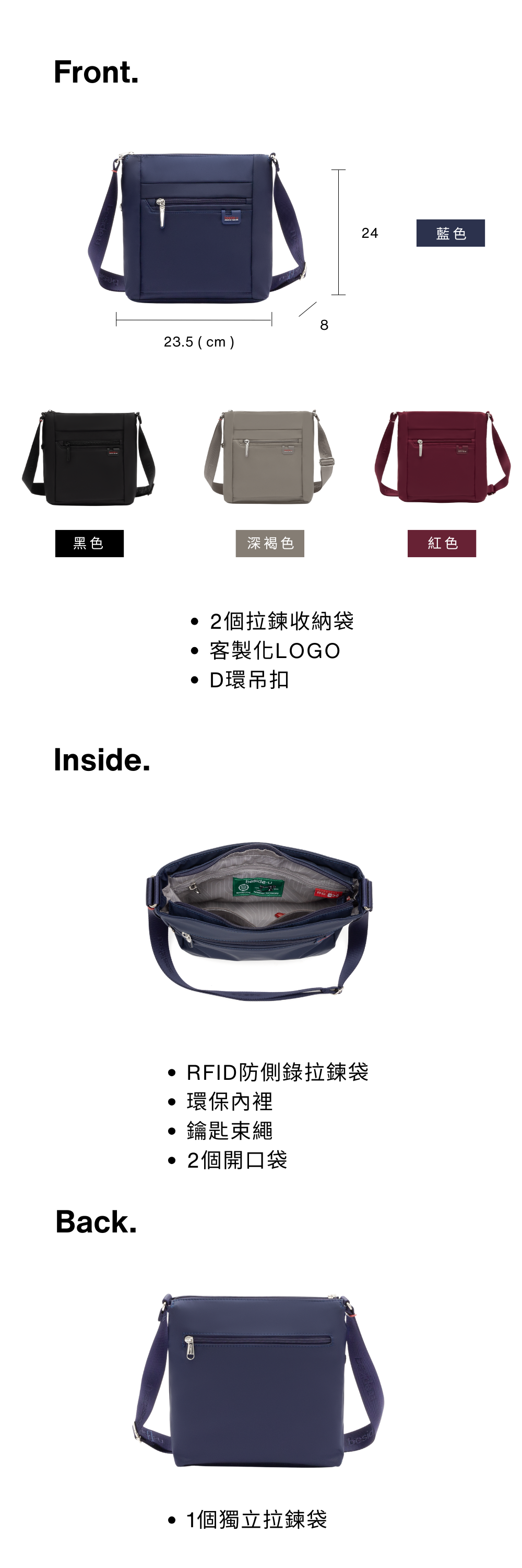 * 1 個 RFID 條信息防盜拉鍊口袋。