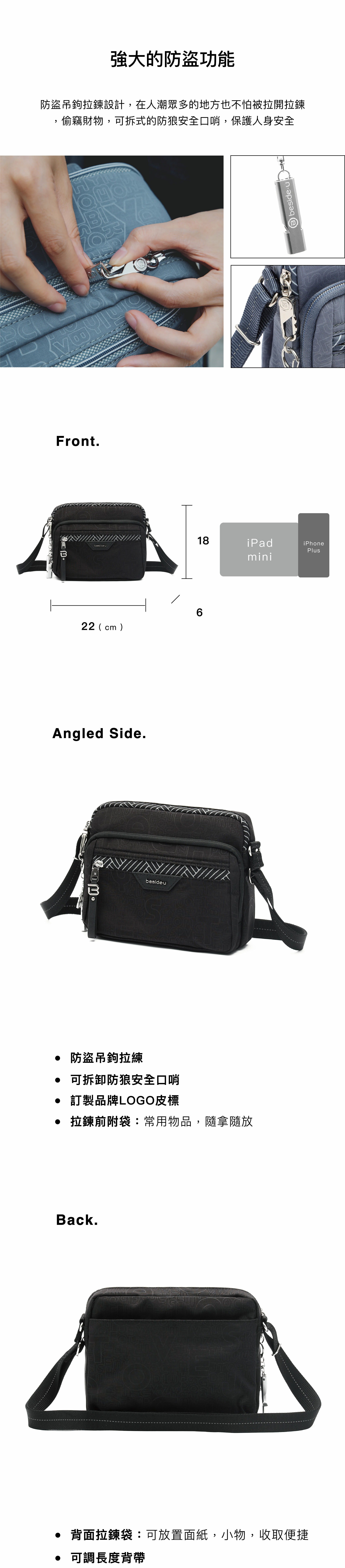 * 可調整長度背帶。