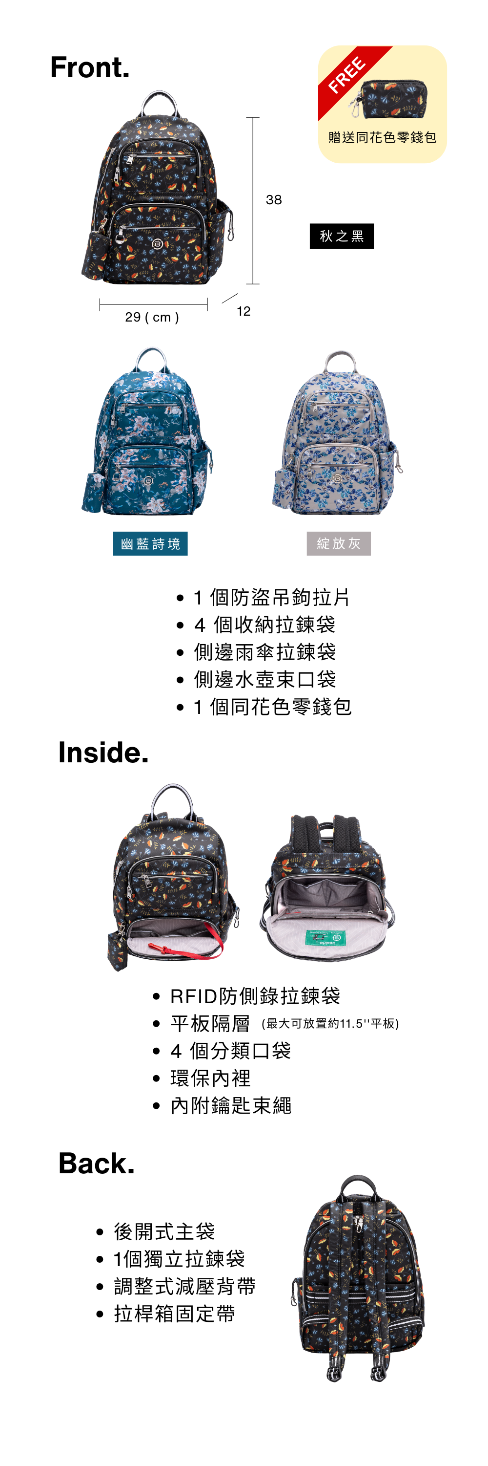 * 1 個後開式主袋