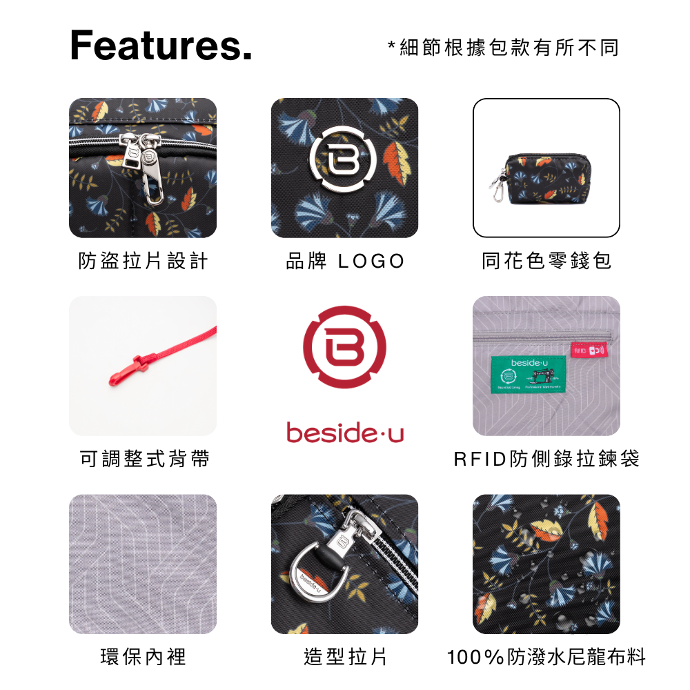 * 100%『防潑水』+『觸感舒適』尼龍面料