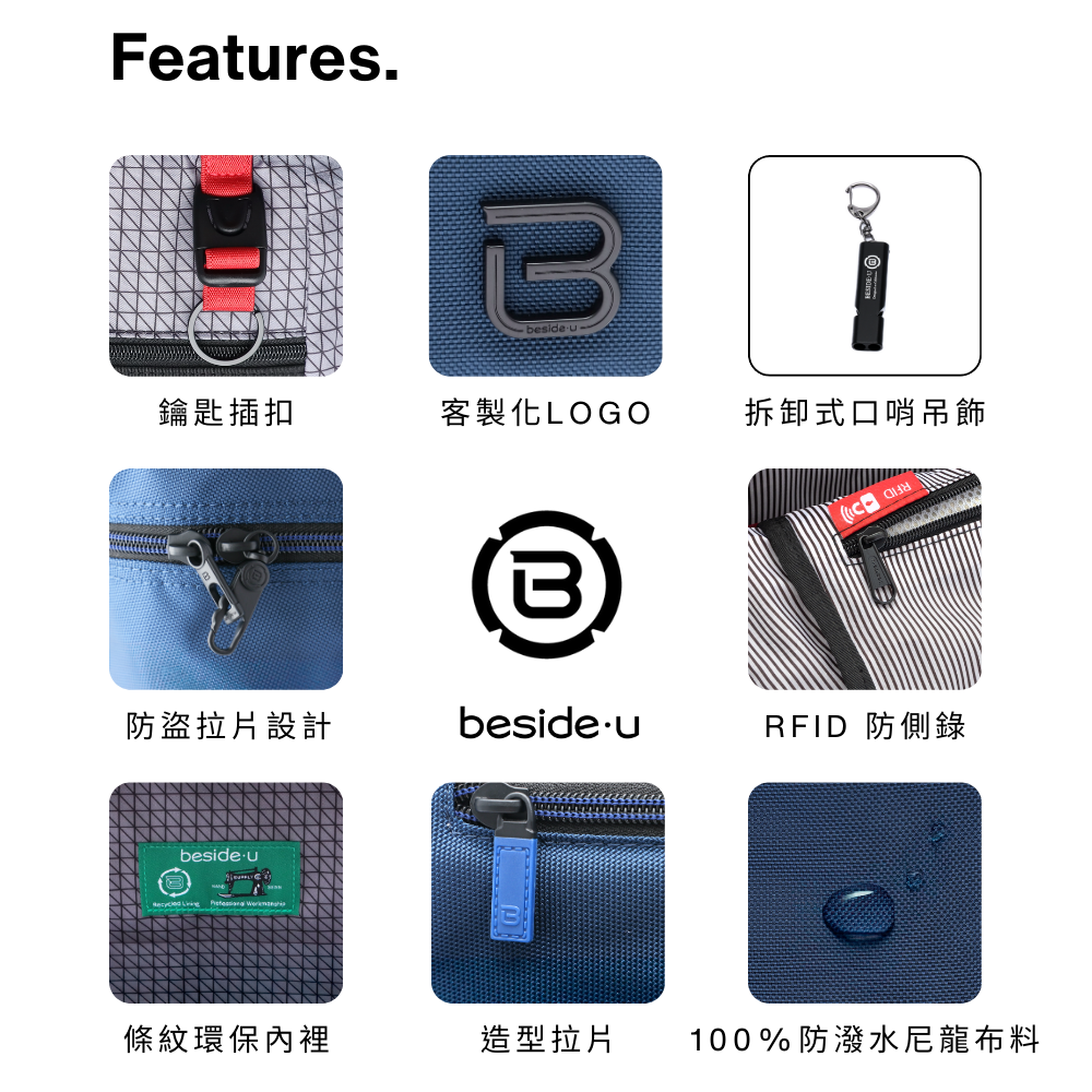 * 1 個 RFID 條信息防盜拉鍊口袋