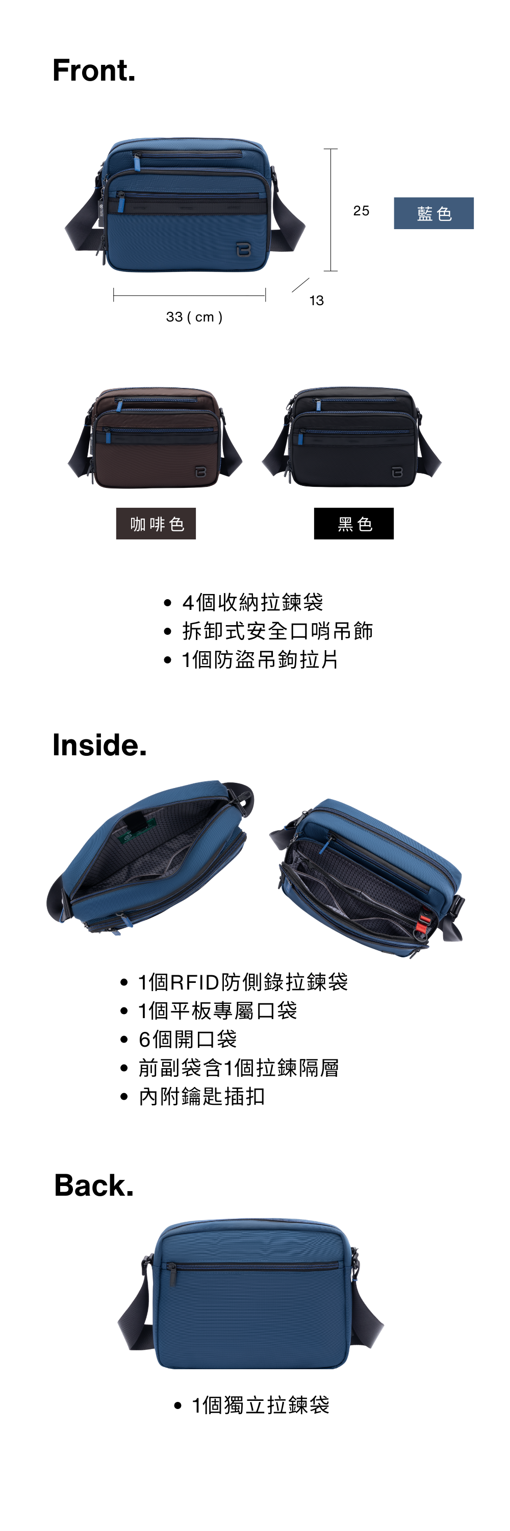 * 前副袋含1個拉鍊隔層