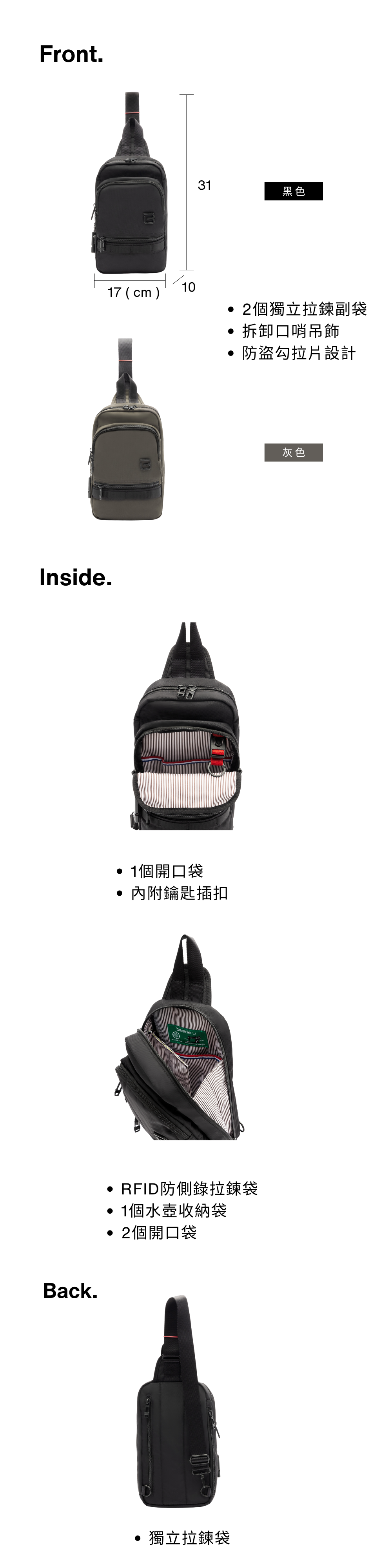 * 1 個 RFID 條信息防盜拉鍊口袋。