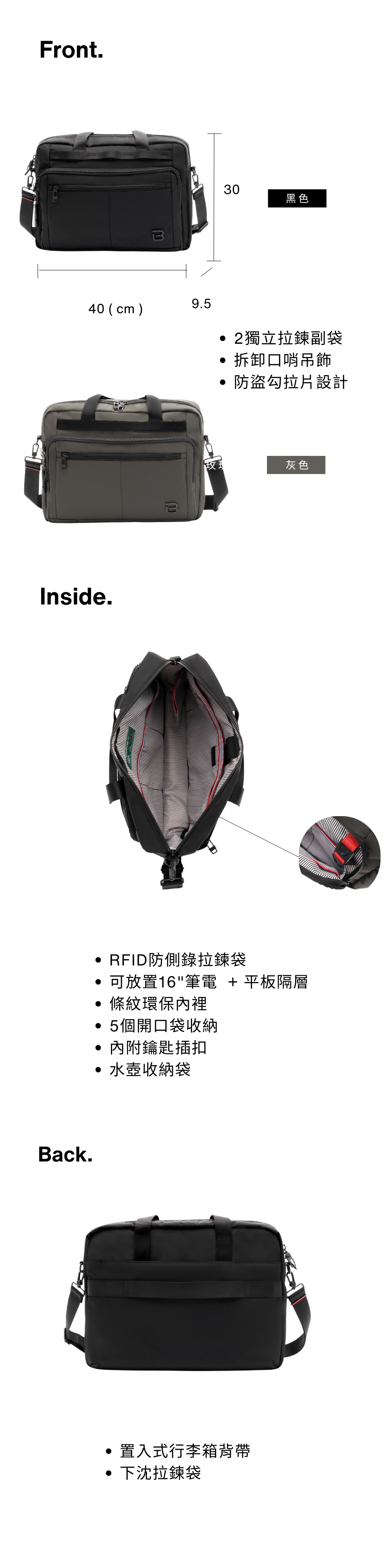 * 1 個 RFID 條信息防盜拉鍊口袋。