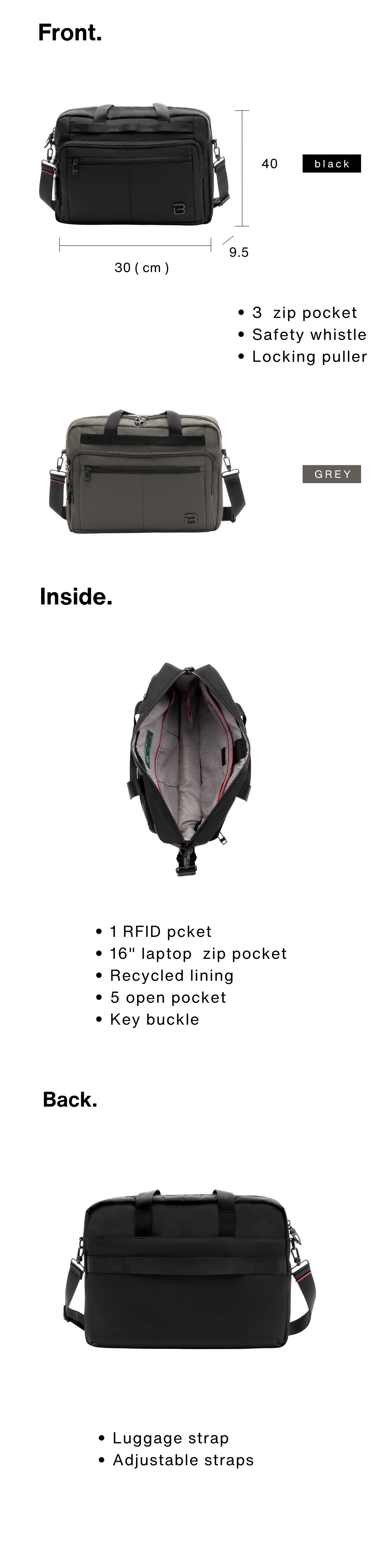 * 1 compartment for notebook