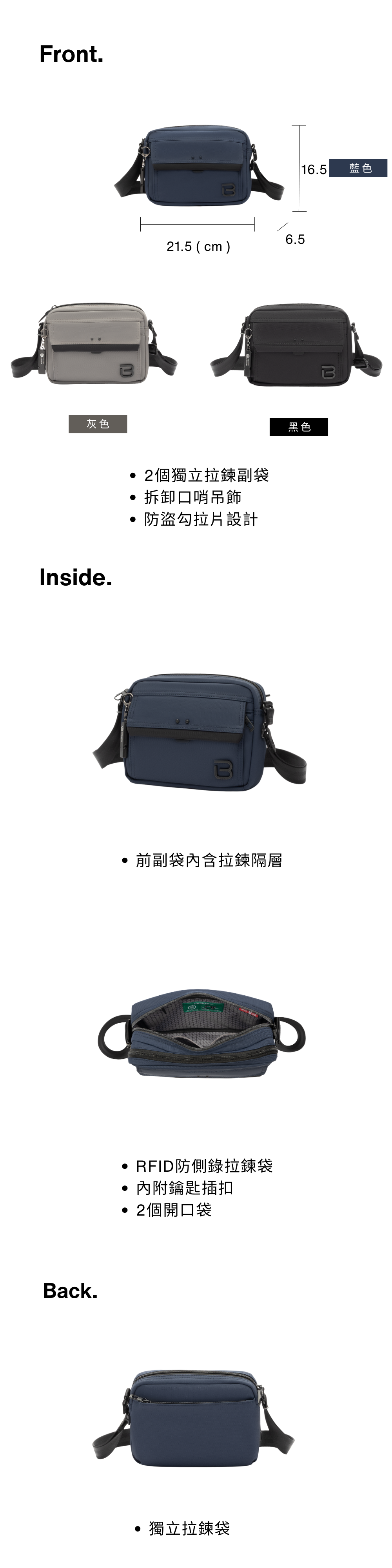 * 1 個 RFID 條信息防盜拉鍊口袋。