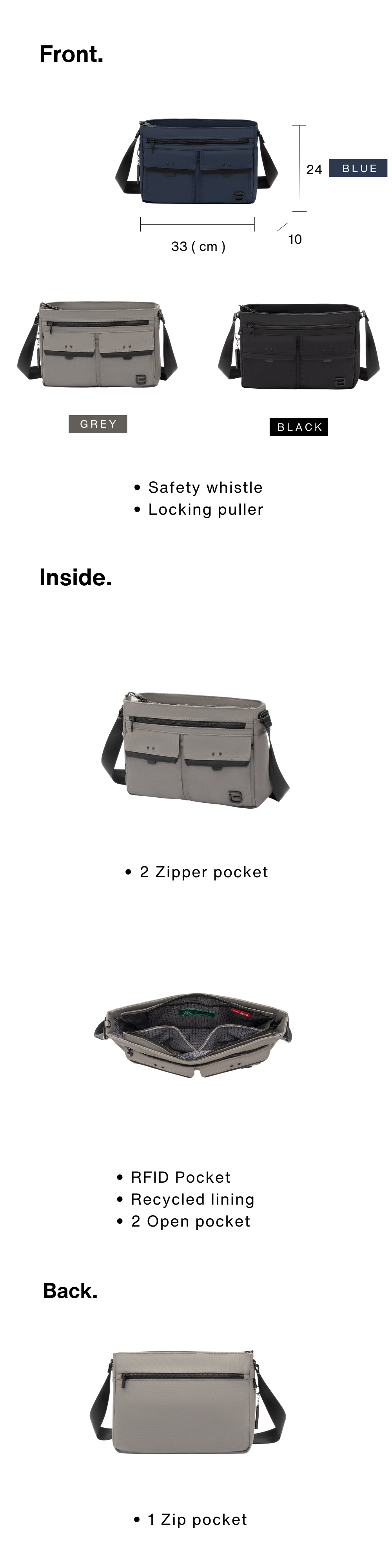 * 4 zip pockets
