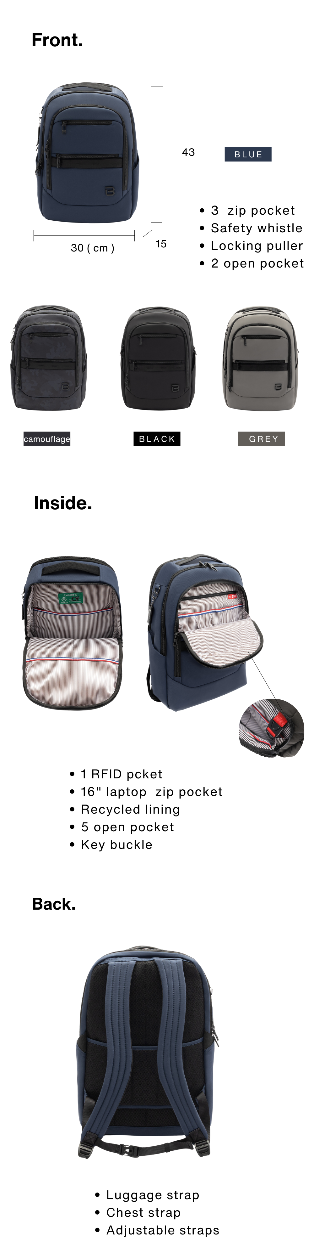 * 3 zip pockets